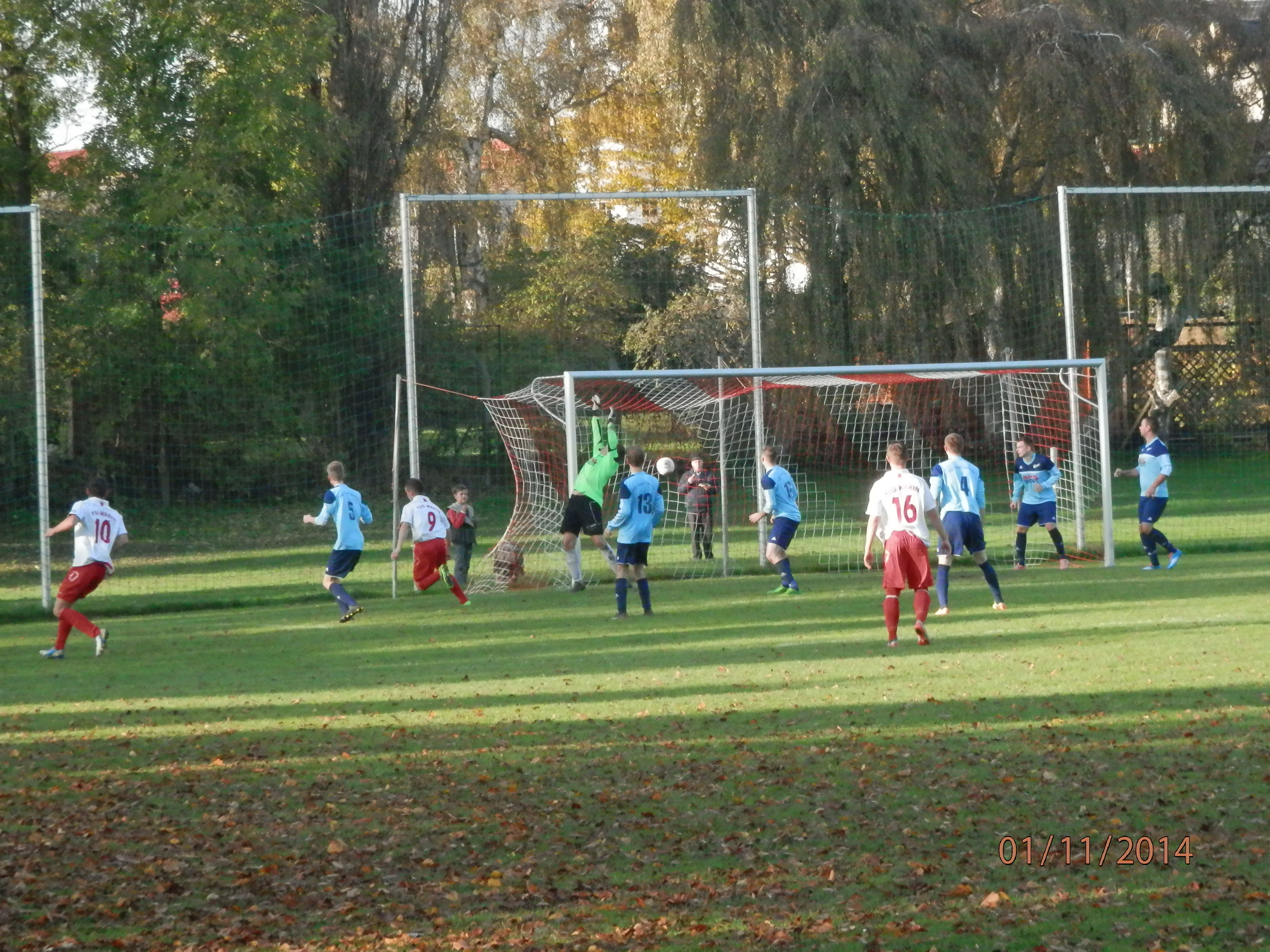 Bei trübem nasskaltem Herbstwetter begann die Partie eigentlich optimal für die Gäste. Gleich mit der ersten Aktion in den gegnerischen Strafraum erzielte Hannes Brandenburg, nach guter Vorarbeit von Danny Thomas und Sascha Zimmermann über den linken Flügel, mit blitzschneller Drehung und gleichzeitigem Abschluss aus etwa vier Metern Torentfernung die frühe …