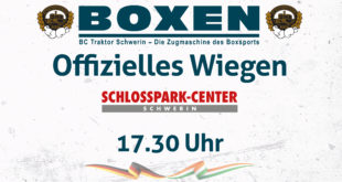 Der erste Einsatz für die Bundesligisten im Vergleichskampf beim BC Weißenburg Am Sonntag kommt es für einen Teil des Schweriner Bundesligateams zum ersten Einsatz vor Saisonbeginn in der 1. Bundesliga. Bei der Weißenburger Kirchweih treffen die TRAKTOR-Athleten auf den ansässigen Boxclub Weißenburg, der eine bayrische Top-Auswahl in den Ring schickt. …