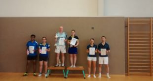 Zwei von vier Paarungen auf dem Treppchen Für den BSC 95 Schwerin starteten in Bützow 4 Paarungen in zwei verschiedenen Leistungsklassen. In der A-Klasse spielten Yvette Reinecker/Richard Edelmann und Samira Shiw Gobin/Robert Hendemann in einer 5er-Gruppe während Luise Mai/Jithin Basil in einer 6er-Gruppe antraten. In beiden Gruppen spielte jeder gegen …