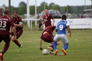 SGDynamoSchwerinAuf Grund von zahlreichen Ausfällen, unter anderem fehlten 5 Stammspieler, trat die SG Dynamo Schwerin die Fahrt nach Polz nur mit 11 Mann an. Zu allem Überfluss verletzte sich auch noch Tobias Tarnow beim warmmachen. Er lief zwar mit auf den Platz, konnte aber nicht laufen und hatte daher kaum Einfluss aufs Spiel. Der SV Blau Weiß Polz machte das Spiel und Dynamo versuchte mit langen Bällen und über Standardsituationen zum Erfolg zu kommen. In der 12. Minute stand Dynamo Schwerin bei einer Flanke zu weit von Goncalves Dias Andrade De Oliveira weg und dieser nickte den Ball aus 5 Metern zum 1:0 für Polz ins Tor. Dynamo Schwerin kam in der 1. Halbzeit nur durch Distanzschüsse und Standardsituationen vor das Polzer Tor, zielte aber zu ungenau. Lukasz Polak, der Torjäger von Polz, lupfte den Ball in der 41. Minute über die Dynamo Abwehr, Goncalves Dias Andrade De Oliveira nahm den Ball per Hand mit und schob den Ball zum 2:0 ins Tor, da das Schiedsrichtergespann das Handspiel übersehen hatte. So ging es mit einer 2:0 Führung für Polz in die Kabinen.