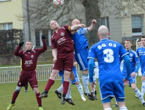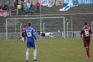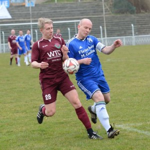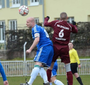SGDynamoSchwerinAuf dem sehr unebenen Boden taten sich beide Mannschaften schwer. Nach einem Eckball von Nico Leistikow kam Daniel Klein in der 5. Minute zum Abschluss. Er bekam aber keinen richtigen Druck hinter den Ball und so konnte Martin Jastram ohne Probleme halten. Auf der anderen Seite konnte Daniel Leistikow in der 13. Minute einen Distanzschuss von Tim Lüdeke nur zur Seite abwehren. Ludwigslust/Grabow kam wieder in Ballbesitz. Nach einer Flanke scheiterte Philip-Pascal Zukowski mit seinem Kopfball aus kürzester Distanz am stark haltenden Daniel Leistikow. Zwei Minuten später köpfte Daniel Klein nach einer Flanke von Nico Leistikow über das Tor. Philip-Pascal Zukowski schoss in der 29. Minute über das Fangnetz. Die SG 03 Ludwigslust/Grabow startete nun eine kurze Druckphase. Nur eine Minute später ging ein Distanzschuss von Jens Richter rechts vorbei. Wiederum nur eine Minute später lenkte Daniel Leistikow einen Schuss von Philip-Pascal Zukowski zur Ecke. In der 42. Minute schoss sich Tim Lüdeke schon mal warm, sein Schuss von von der Strafraumgrenze ging drüber. Zwei Minuten später schoss er dann einen Freistoß zum 0:1 in die rechte Ecke des Tores. Dies war auch der Halbzeitstand.