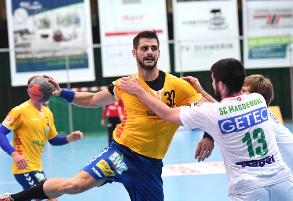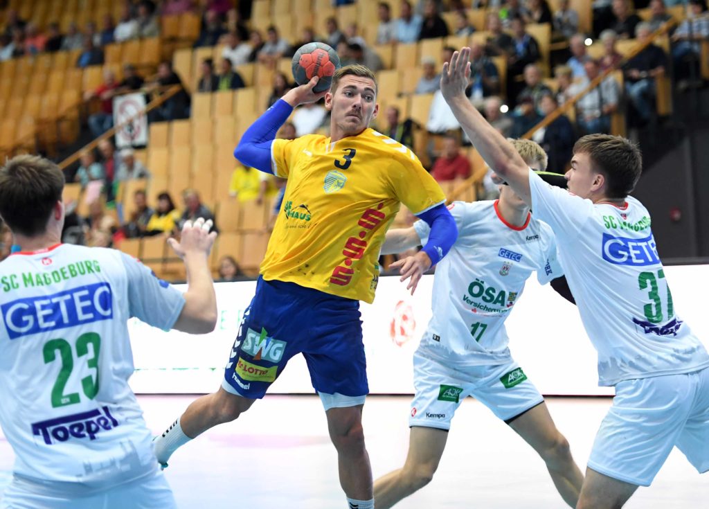 Knapp vier Minuten mussten die 1.457 Handballfreunde gestern Nachmittag in der Sport- und Kongresshalle auf den ersten Treffer ihrer Mecklenburger Stiere warten: Mathias Mark Pedersen stellt den Anschluss zum 1:2 im ersten Heimspiel her. Die YoungsterS des SC Magdeburg hatten nämlich die ersten Minuten geschickt für sich genutzt. Und der sehr junge Kader (Durchschnittsalter 18 Jahre !) aus der Bördestadt sollte bis zum Schluss mit guter Athletik die Gastgeber in einer Partie auf Augenhöhe fordern.