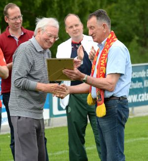 In der Halbzeitpause wurde die Schweriner Trainerlegende Horst Schulz geehrt. Er bekommt einen Tribünenplatz mit seinem Namen. Die Aktion „Ein Platz der Deinen Namen trägt“ ist nämlich angelaufen. FCM Präsident Reinhard Henning überreichte die Urkunde. Eine schöne Sache am Rande des Spiels.