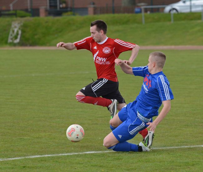Eine dieser Balleroberungen führte dann auch nach 12 Minuten zum Leezener Führungstreffer. Möller fing einen Fehlpass im Aufbauspiel ab, bediente sofort Wrobel im Lauf und der mit sattem Schuß zum 1-0 für die Roten. Nur 3 Minuten war wieder Wrobel zur Stelle, nach einer Reihe von aufeinander folgenden abgewehrten Schüssen schaltete er am schnellsten und verwandelte aus Nahdistanz zum 2-0. Leezen setzte weiter nach, ließ den Ball konzentriert laufen und erarbeitete sich beste Chancen. Doch die Chancenauswertung blieb mangelhaft und so ging es mit dem 2-0 in die Halbzeitpause. Gadebusch fand in Halbzeit eins weitestgehend nicht statt und so erlebte die Leezener Defensive bis zum Pausenpfiff einen ruhigen Nachmittag. Das änderte sich mit Wiederanpfiff, die Ostuferkicker weitere 10/15 Minuten im Pausenmodus, was eine leichte Druckphase des Gastgeber mit sich brachte. Doch Torgefahr entstand auch hierdurch nicht und so übernahm die SpVgg ab der 60. Minute wieder die Spielregie. Die Quittung folgte prompt, Ebener schickt Möller steil, der kreuzt in den Strafraum und kann dort nur strafstoßwürdig gefoult werden. Den fälligen Elfmeter verwandelte der Gefoulte dann selbst und erhöhte dadurch auf 3-0. Danach hätte man die Torausbeute deutlich hochschrauben können, aber der letzte Pass wurde zumeist unsauber oder die vielen Konter und Umschaltmomente fahrig zu Ende gespielt. Einmal konnte das Leezener Lager dann aber doch noch mal jubeln. Gute Kombination von Schramm und Möller am Flügel und dessen Hereingabe verwertete wiederum Wrobel mit seinem 3. Tor im Spiel zum 4-0 Endstand (82.min).