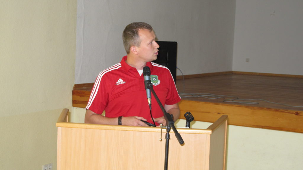 „Warm gelaufen“ ist auch der Lehrwart Florian Markhoff, der vor Ort die neuen Regeländerungen vorstellte. Zusammenfassend lässt sich feststellen, dass ab sofort Abseits und Vergehen von Teamoffiziellen härter bestraft werden. So ist bereits „das Blockieren des Laufweges eines im Abseits stehenden Spielers strafbar“, informierte der Referee, der seit mehreren Jahren in der Amateur-Oberliga und Regionalliga (als Assistent) fungiert. Bei physischen Auseinandersetzungen von Teamoffiziellen wie Trainern gab es „früher“ einen Schiedsrichterball, da das Vergehen außerhalb des Spielfeldes stattfand. „Jetzt müssen wir einen direkten Freistoß an der Seitenlinie verhängen, auch wenn beispielsweise Gegenstände aufs Spielfeld geworfen werden.“ Alle Regeländerungen online auf der KFV-eigenen Website unter „Schiedsrichter“ zu finden.