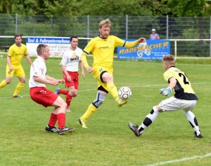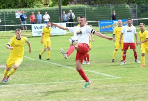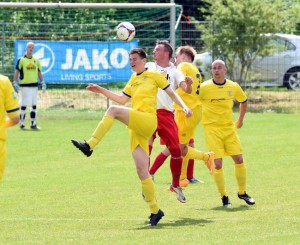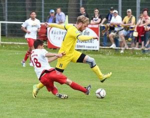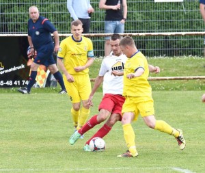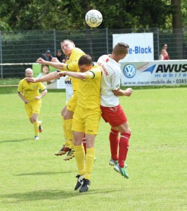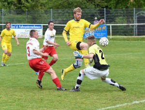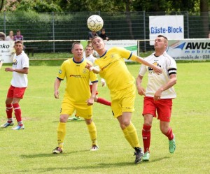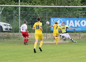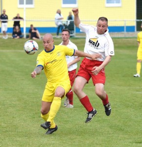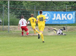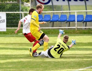 Die Partie begann bei sommerlichen Temperaturen und einem doch sehr holprigem Geläuf eher sommerfußballmäßig. Die Gastgeber, mit bisher nur einem Heimsieg in der Rückrunde, zeigten sich deutlich mutiger als der Tabellenzweite in ihren Offensivaktionen. Hatten nach gut einer Viertelstunde eine erste Möglichkeit durch Hempel (19.). Bei den Gästen waren Torgefährliche Szenen bis dato Fehlanzeige. Erst in der 34.Minute konnte Sascha Zimmermann mit gelungenem Anspiel Hannes Brandenburg im SV Strafraum in gute Position bringen, aber ihm versprang im entscheidenden Moment der Ball. Fast im Gegenzug trafen die Platzherren mit einem Versuch aus halbrechter Position nur das linke Lattenkreuz des TSG Gehäuses (35.). Ihre beste und eigentlich auch einzige ernsthafte Torchance hatten die Wariner dann durch Patrick Wichmann, der am gegnerischen Fünfmeterraum etwas rustikal vom NSV Keeper und einem Verteidiger gerade so vom am erfolgreichen Torschuss behindert werden konnte (40.). Den ersten Treffer aber erzielten dann die etwas frischer wirkenden Neumühler mit einem direktem 18-Meterfreistoss von Schütz, der irgendwie den Weg durch die TSG Mauer ins untere rechte Toreck zum 1:0 (42.) fand.