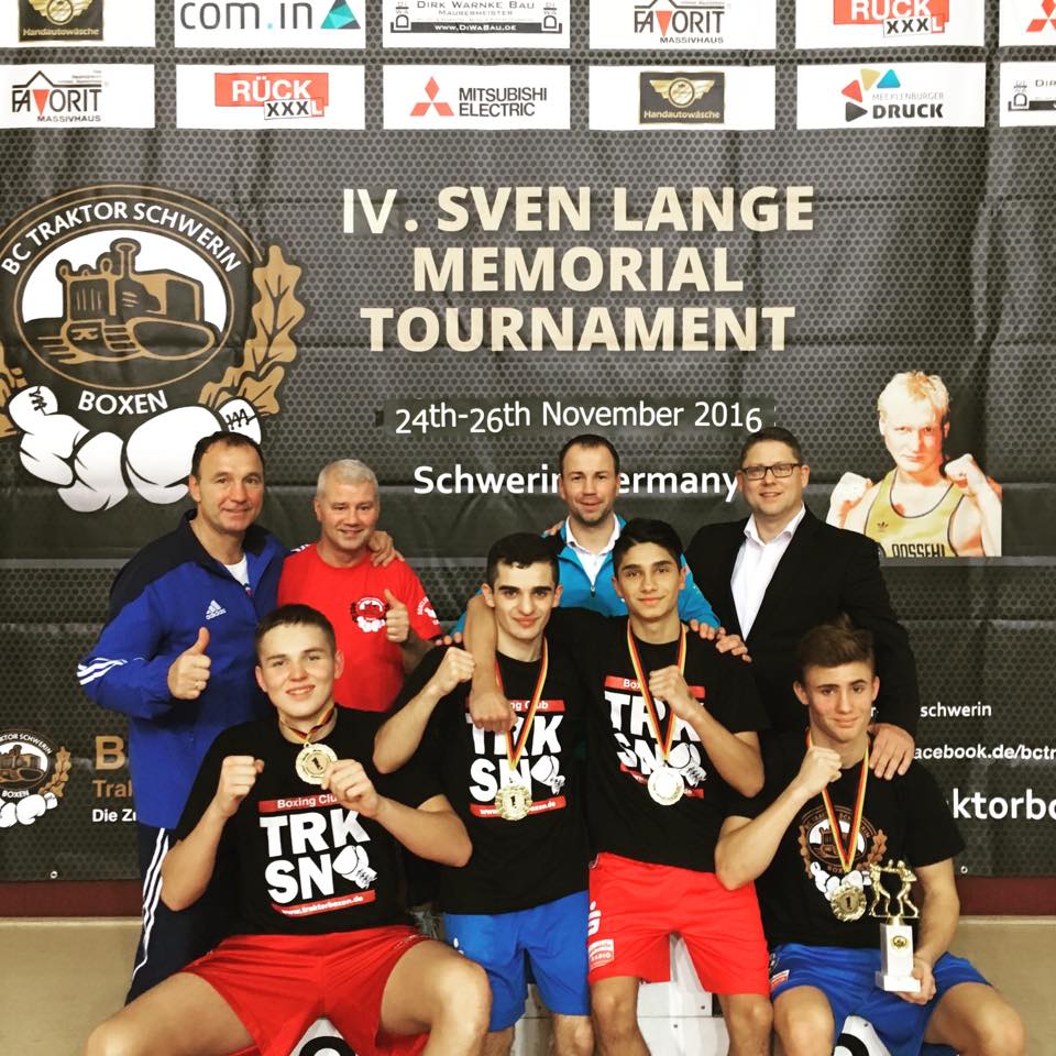 Kommende Woche fliegen beim internationalen Nachwuchsturnier in Gedenken an Sven Lange wieder die Fäuste. In diesem Jahr haben sich so viele Mannschaften wie nie zuvor für die Wettkämpfe angemeldet. Mit dabei sind erstmals Teams aus der Mongolei, Litauen, Sri Lanka, Indien oder auch Weißrussland. Aber auch Mannschaften aus den vergangenen Jahren wie Frankreich, England, Niederlande und Dänemark wollen in Schwerin wieder auf Medaillenkurs gehen. Insgesamt haben sich über 20 Teams aus ganz Deutschland und der Welt für das dreitätige Turnier in der Landeshauptstadt registriert. Spitzenreiter der letzten Jahre ist das Team aus England mit 9 Goldmedaillen, verfolgt vom Boxverband Niedersachsen und dem BC Traktor Schwerin mit jeweils 5 Turniersiegern. Leitender Trainer Sebastian Zbik will die vier Turniersiege aus dem Vorjahr mit dem Schweriner Nachwuchsboxern verteidigen. Das dreitägige Turnier fand in den letzten fünf Jahren immer mehr Anklang- gerade auch auf internationaler Ebene. Schon zu damaligen Zeiten lockte das Schweriner Turnier Tausende an den Ring. An diese erfolgreichen Boxjahrzehnte soll in Zukunft nun angeknüpft werden.