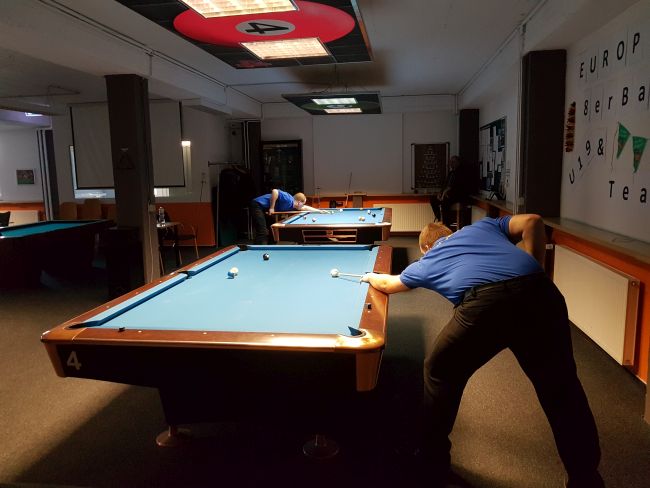 In der ersten Hälfte teilten sich die Mannschaften die Punkte, sodass mit einem 2:2 der Ausgang des Spieltags völlig offen war. In der Rückrunde drehten die Schweriner dann nochmal richtig auf! Alexander Siewert bezwang seinen Gegner im 10-Ball mit 0:8, Marc Trepte gewann beeindruckend mit 9:125 in der Disziplin 14.1 in nur 8 Aufnahmen! Auch Ersatzmann Stefan Stresing gelang sein erster Saisonsieg im 8-Ball und machte den 3:5 Auswärtssieg perfekt. Mit dem Sieg klettert das Team auf den 1. Platz in der Tabelle.