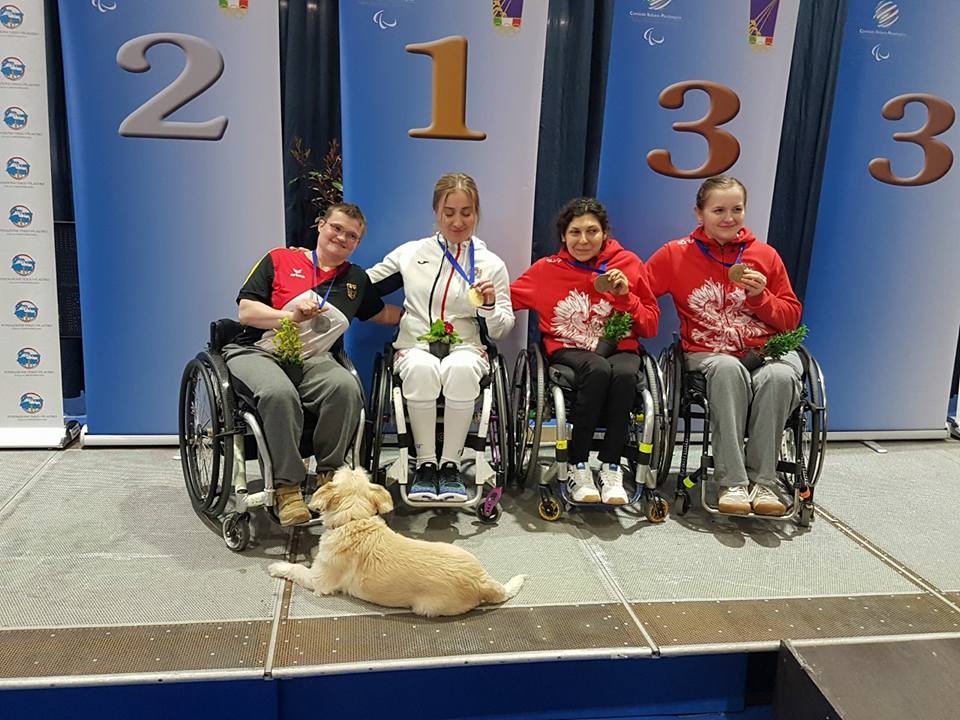 „Insbesondere Sylvi wusste in Pisa überzeugen“ resümiert Bondar nach drei intensiven Wettkampftagen das Geschehen. Vor vier Wochen beim WC in Eger musste sich die Rostocker Athletin einem Review der Klassifizierung unterziehen, bei dem aber abschließend ihre Wettkampfklasse (Kategorie B) bestätigt wurde. Wie befreit trumpfte Tauber (Makkabi Rostock) auf: Im Florett zog sie mit 5 Siegen in der Vorrunde in Direktausscheidung ein und unterlag erst im Achterfinale der Französin Cecile Demaude. Platz 6 war die Belohnung. Am Folgetag gelang ihr mit dem Degen der Weg bis in das Achterfinale genauso mühelos. Mit einem hart erkämpften 15:13-Sieg gegen Olga Yesina (UKR) zieht Tauber diesmal ins Halbfinale ein. Hier unterliegt sie, wenn auch deutlich knapper als am Vortag, erneut Cecile Demaude (FRA) und gewinnt Bronze. Am dritten Wettkampftag dann die Überraschung. Statt durch die die Wettkämpfe körperlich angestrengt und geschwächt zu sein, läuft Tauber zur Hochform auf. Wieder direkter Durchmarsch in das Achterfinale und dann setzt die Deutsche voll auf Kampf. Mit einem 15:13 gegen Sophie Sablon (FRA) der Einzug ins Halbfinale. Denkbar knapp der Sieg gegen Packet (POL), mit nur einem Punkt Vorsprung bezwingt Tauber ihre Gegnerin und zieht ins Finale ein. Irma Khetsurinan (GEO) zeigte ihr ganzes Können und verwies Tauber mit einem deutlich 15:7 auf den Silberrang.