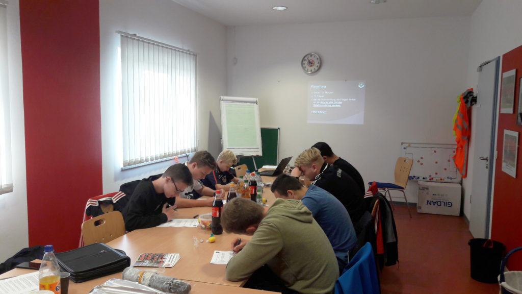 Thema des theoretischen Teils war „Die klare Ansage: Von der Ermahnung bis zur Roten Karte!„ mit ausgewählten Videoclips. Nach einem kleinen Mittagssnack konnte Gelerntes sogleich wieder praktisch angewandt werden, denn es ging anschließend zu ausgewählten Spielleitungen.