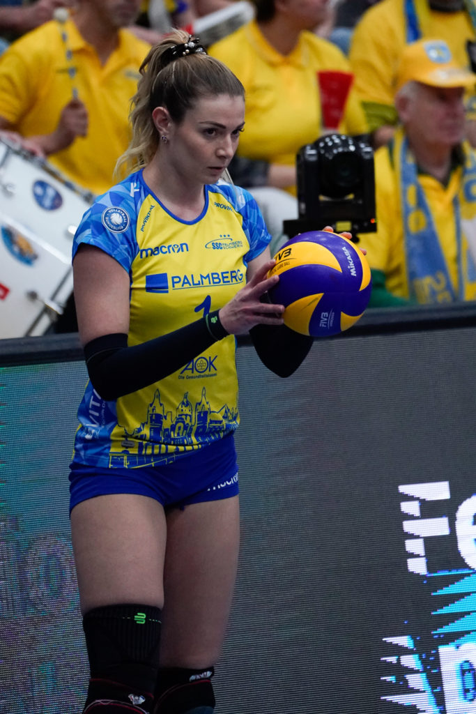 Für viele war sie die MVP, die wertvollste Spielerin, im nervenaufreibenden Viertelfinalmatch des SSC Palmberg Schwerin gegen den USC Münster am Mittwoch: Außenangreiferin Gréta Szakmáry. Eingewechselt bei einem 0:2-Rückstand nach Sätzen, stabilisierte die 27-jährige Ungarin die strauchelnde Annahme, setzte starke Akzente im Angriff und leitete damit die Wende im Spiel ein, dessen 3:2-Ergebnis den SSC ins Halbfinale der Playoffs einziehen ließ. „Es war toll, dass ich die Chance bekommen habe, zu spielen und dass wir das Spiel noch drehen konnten“, strahlte die Nationalspielerin.
