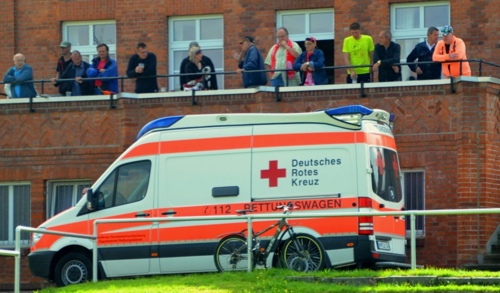 ©Berhard Knothe/ der Rettungswagen musste den an der rechten Schulter verletzten Pierre Gomm ins Krankenhaus transportieren
