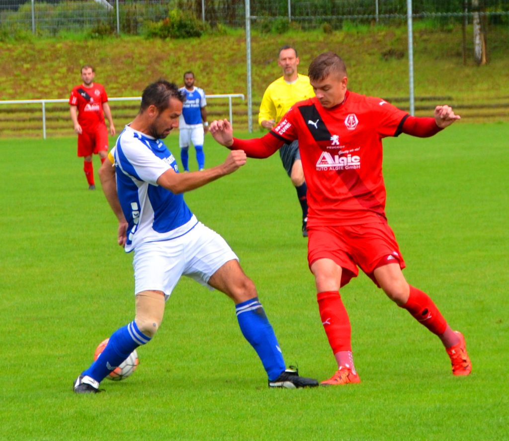 © berhard Knothe/ der Torschütze zum 3:0, Paul Raffel, im Zweikampf